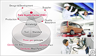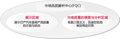 日產(chǎn)汽車一直希望制造出最好的汽車產(chǎn)品。但是銷售前的"出廠質(zhì)量"與顧客實際體驗的"市場質(zhì)量"之間有時存在微小的差異,因此有必要迅速消除這種差異,明確掌握現(xiàn)場的情況。在市場品質(zhì)解析中心(FQC)中一直都奉行稱為"現(xiàn)場、現(xiàn)物、現(xiàn)實"的三現(xiàn)主義。這是一種通過面對實際中出現(xiàn)問題的零部件與汽車,重現(xiàn)現(xiàn)象加深現(xiàn)實理解的活動。