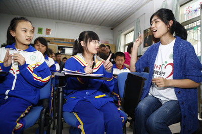 蒲公英中學是一所在日產(中國)投資有限公司及其他社會愛心企業和愛心人士的捐助下誕生并成長的公益學校,一直擁有良好的志愿者傳統。在這次“愛心1+1”活動前期的志愿者招募中,40名鄭州日產受助學子和普通的大學生們踴躍報名,希望把鄭州日產和社會給予的愛心傳遞給農民工子弟。在當天的音樂公開課上,志愿者在慷慨激昂的進行曲當中帶領學生們進行打節奏練習,用活潑趣味的教學方式激發起了學生的學習興趣,最后學生們親自在“愛心卡片”書寫下祝福語并贈送給志愿者表示感謝。