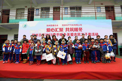 2013年12月18日上午,鄭州日產“愛心匯聚,共筑暖冬”-2013牽手暖冬關愛農民工子弟活動在鄭州市德全農民工子弟學校舉行。此次活動中鄭州日產向學校500名學生捐贈了價值5萬元的500份暖心包,并向學校捐贈10萬元過冬費用,幫助農民工子弟溫暖過冬。