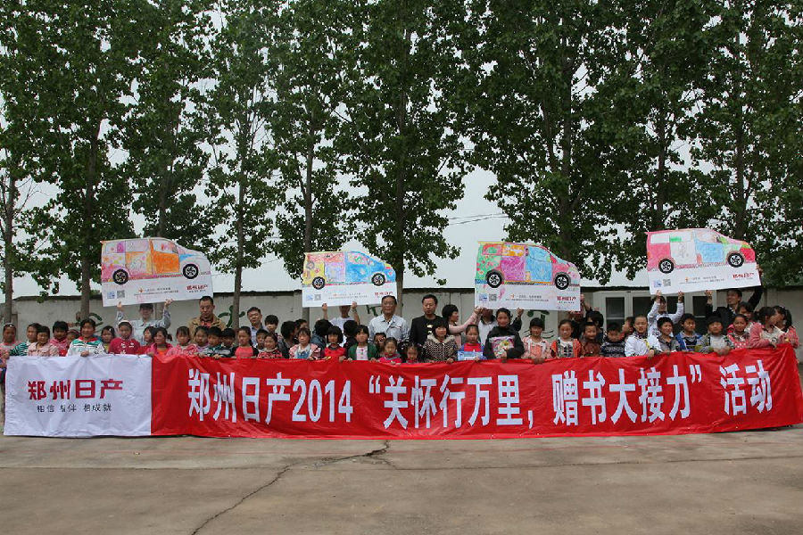 2014年3月11日,鄭州慈善總會、鄭州日產“關懷行萬里•贈書大接力”活動再次啟動,呼吁社會各界愛心人士捐贈閑置書籍,匯聚愛心車主、網友、企業員工等眾多愛心力量,形成了全民獻愛心的大好局面。還開展了#讀愛分享,好書相贈#有獎互動活動,網友可以用最簡單的方式參與并支持公益。繼廣東站和鄭州站之后,線下活動還將走進北京郊區的偏遠地區小學,讓鄭州慈善總會、鄭州日產“愛心書屋”幫助更多的孩子完成閱讀夢想。