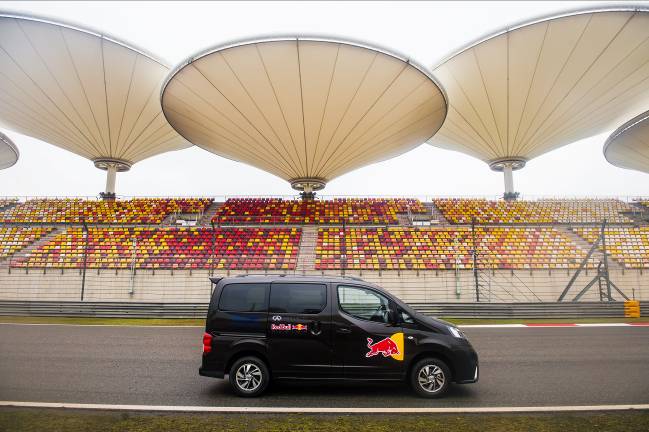 • NISSANNV200和碧蓮作為官方服務用車為英菲尼迪-紅牛車隊在賽場上運送裝備和車手