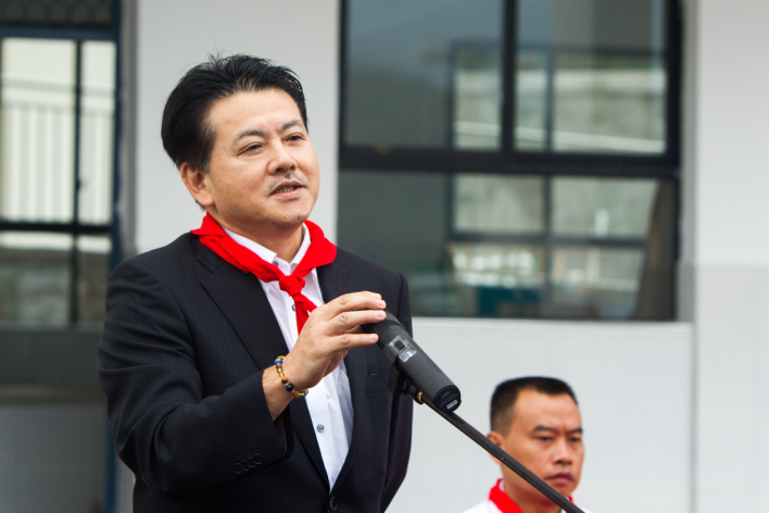 日產(chǎn)(中國)投資有限公司董事總經(jīng)理西林隆先生為援建學(xué)校落成儀式致辭