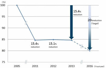 | 3) 最大限度減少碳排放量 | 企業活動二氧化碳排放減少15.4%(噸-CO2/輛,相比2005財年) |