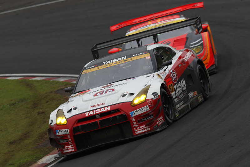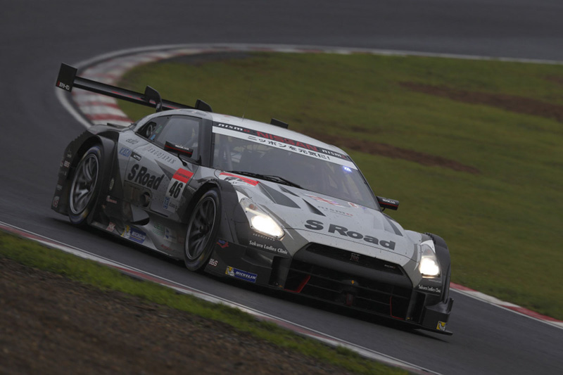 由于大霧,原定于星期六舉行的排位賽被迫取消,推遲到星期日早晨。當天早晨的比賽也是在雨中開始的,上站比賽冠軍#23 MOTUL AUTECH GT -R(車手為松田次生/羅尼?昆達利尼)由于在排位賽中拿下第3名,得以在第二排發車。而另外三輛GT-R則在較靠后的位置發車。比賽開始后,雨暫時停歇,路面也開始干燥起來。 但是,在下午兩點的熱身圈比賽中,雨滴再次從天空落下。受降雨影響,熱身圈僅跑了三圈。隨著多處賽道路面開始積水,每輛賽車都努力保持住抓地力,尤其是GT300比賽中的賽車,都希望盡早進入維修區更換輪胎。在GT500比賽中,有七輛賽車在比賽開始還不到一半就早早進入維修區更換外胎面,而另外八兩賽車則選擇在比賽初始階段繼續使用滑面輪胎。 隨著幾圈比賽以后雨開始停歇,路面很快變干燥,這種冒險被證明是值得的,他們得以加速趕超。也就是在這時,從第三位發車由昆達利尼駕駛的#23 GT-R 開始逐漸落后。雖然成績一度跌至第12名,在路面狀況開始改善后,他開始加速趕超。由本山駕駛的#46 GT-R在比賽一開始就迅速爬升至第4名。此后,他開始向第一名發起沖擊,把賽車交給柳田之前,最終爬升至第3名。柳田接過賽車后開始有節奏地追趕,由于被判定在出示黃旗后超車,遭受停賽10秒的處罰。時間上的損失使他的排名下跌了幾個名次,但最終以令人欽佩的第7名沖過終點線。