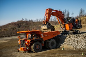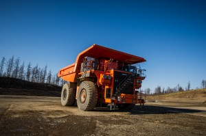 日立建機巨型自卸卡車的輪胎高度將近成人平均身高的兩倍,車身延展長度超過14.5米。