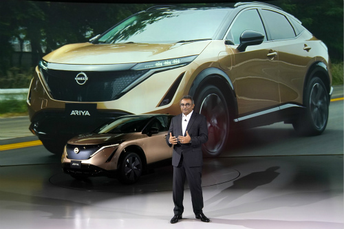 在位于日本橫濱的日產互動體驗館 (Nissan Pavilion)舉行的日產Ariya全球云首秀上,日產汽車公司首席執行官內田誠(Makoto Uchida)先生和日產汽車公司首席運營官古普塔(Ashwani Gupta)先生共同向全球觀眾展示了日產Ariya。