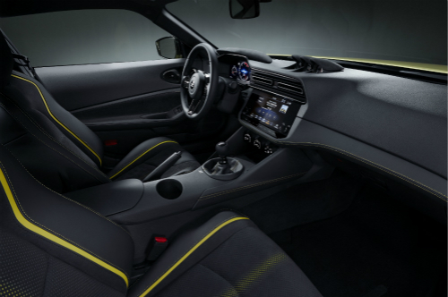 內飾設計團隊通過向專業的傳奇賽車手征詢建議,為日產Z原型車設計出適用于公路和賽道的理想的跑車駕駛艙。通過儀表顯示設備可以發現,所有重要信息如在十二點鐘位置的紅線換檔點等都能夠在12.3英寸的數字儀表顯示屏中找到,一目了然。