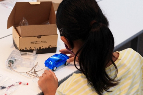 在日產(chǎn)汽車(chē)“Waku-Waku 生態(tài)學(xué)校”項(xiàng)目中,小學(xué)生在進(jìn)行電動(dòng)汽車(chē)模型試驗(yàn)