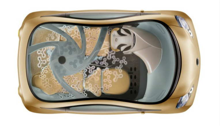 NUVU被稱做“移動的綠洲”,是城市森林中一片安逸的天堂。全景天窗由約12個小型太陽能電池板構成,是對NUVU綠色標志的完美闡釋。每塊電池板形如綠葉,將產生的能量傳輸通道傳遞到蓄電池中進行儲備。同時NUVU的駕駛室是使用純天然的有機材料和可回收材料制造而成。