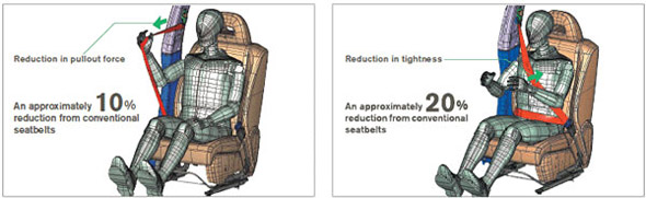 日產研發出低摩擦座椅安全帶,通過將座椅安全帶的帶子軟化,在拉伸出來時輕輕扣上幾乎感覺不到有任何壓迫感。
