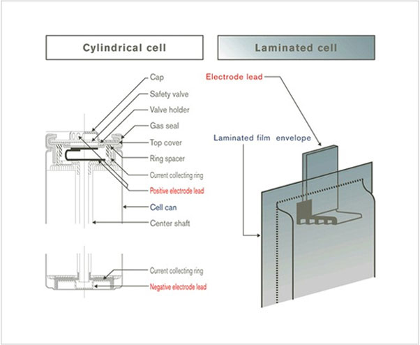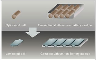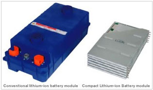 由于薄片性電池比圓筒形電池的組成零部件少,因此在實現輕量化的同時還實現了緊湊化,另外,通過對使用錳材料的正極及使用碳材料的負極進行材料改良,成功實現了高功率。通過在車輛上使用鋰離子電池的豐富經驗及市場數據,解決了關于密封信賴度的課題。