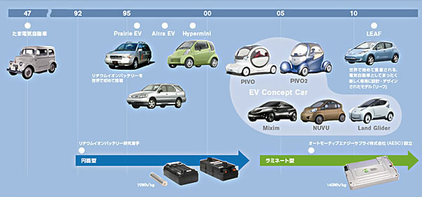 日產(chǎn)為了實(shí)現(xiàn)未來可持續(xù)發(fā)展的汽車社會(huì),不僅考慮提高使用傳統(tǒng)內(nèi)燃機(jī)的汽車油耗性能,而且還考慮必須發(fā)展電動(dòng)車及燃料電池車等零排放車輛。因此日產(chǎn)率先致力于研發(fā)電動(dòng)車以及關(guān)鍵技術(shù)的電池。 日產(chǎn)與戰(zhàn)略聯(lián)盟伙伴雷諾以成為零排放車行業(yè)的領(lǐng)軍者為目標(biāo),計(jì)劃于2010年12月在日本及美國(guó)投放日產(chǎn)LEAF,還計(jì)劃在2011年初在歐洲投放該車型,2012年在全球上市。