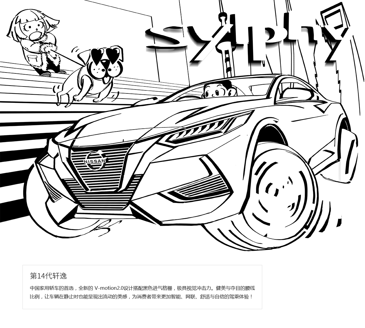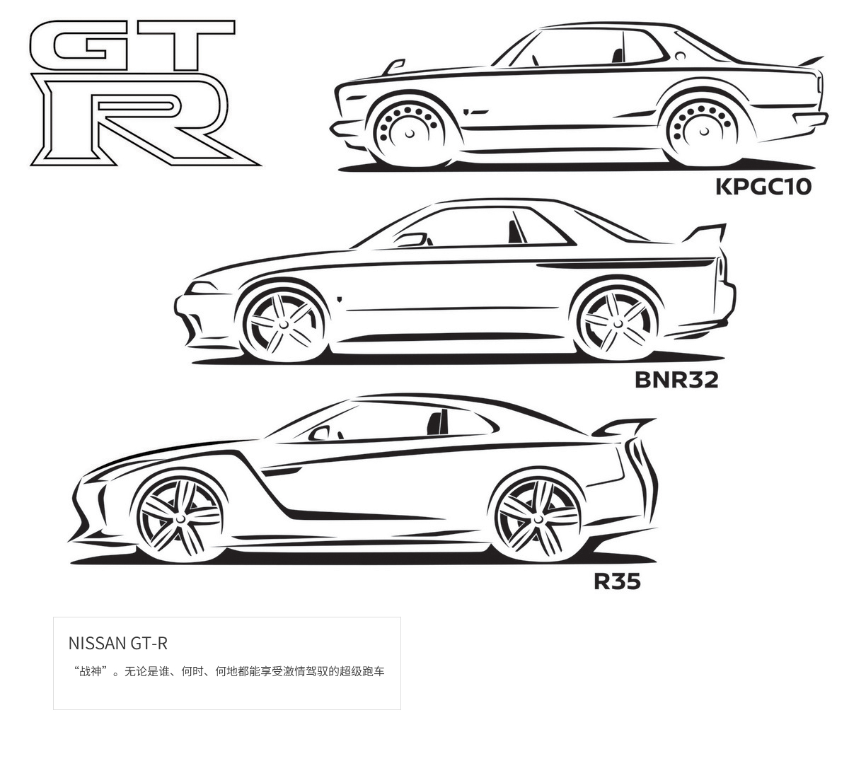 點擊以下圖片,下載喜愛的日產車型線稿,用畫筆為自己的愛車著色吧!