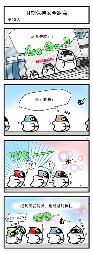 與漫畫中的Eporo機器人一樣,當預碰撞智能剎車系統預判可能與前方車輛或行人發生碰撞時,通過標識提示與警示音來提醒駕駛員,同時,會輔助駕駛員控制剎車,避免碰撞,減輕傷害。