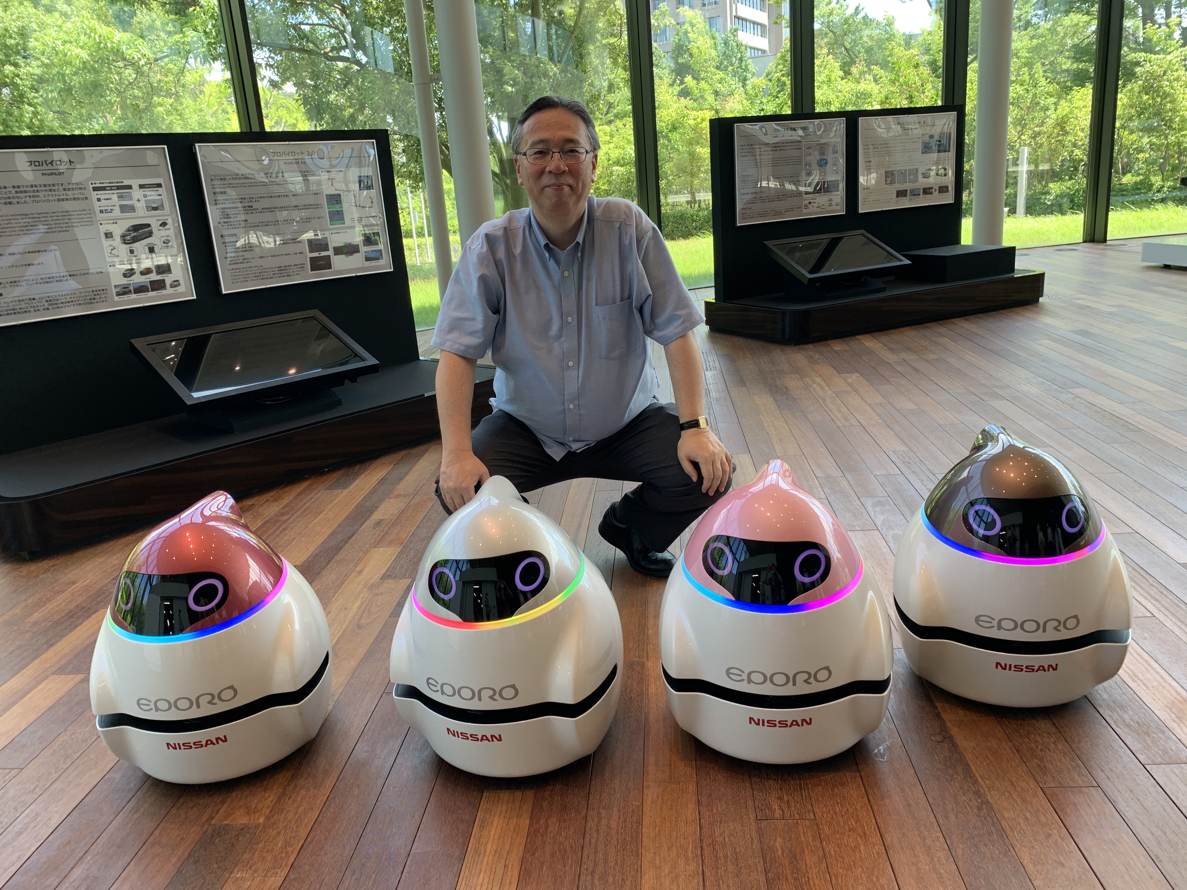 實際上,酒井桑是企劃?先行技術開發總部技術企劃部的酒井雄揮志。技術企劃部的工作是將日產的技術進行簡單明了的介紹。酒井桑不僅帶著Eporo參加展會,還去學校做介紹,對Eporo來說,他就像是主人或飼養員。