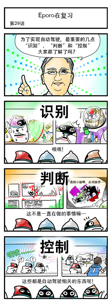 機器人EPORO由日產汽車開發,集可愛造型與多項先進技術于一身。這些EPORO機器人的日常生活,不僅活潑有趣,還生動地展現了為實現自動駕駛、與“識別”、“判斷”、“控制”相關的重要技術。