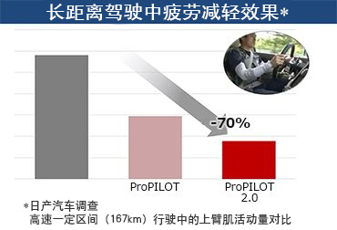據統計,90%以上的交通事故是由于駕駛員的失誤造成的。尤其在長途駕駛中,駕駛員的疲勞累積,在行駛中的認知、判斷和操作變得遲鈍。實驗結果表明,“日產ProPILOT超智駕”技術和“ProPILOT 2.0”系統可以輔助駕駛,并達到減輕駕駛員疲勞的效果。(根據日產汽車的調查得出)