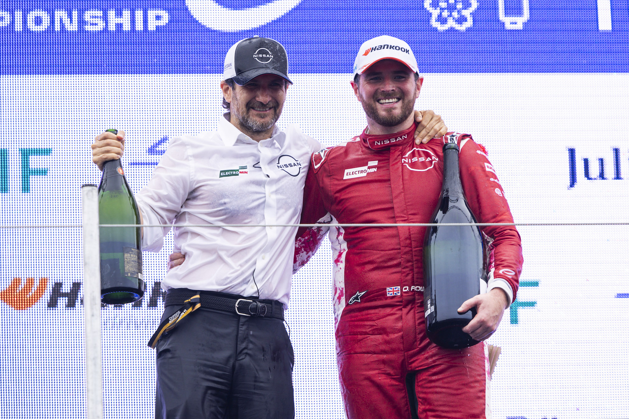 日產Formula E車隊總經理兼負責人Tommaso Volpe先生表示:“這個周末太特別了!能在主場車迷面前表現出色,感覺真是太棒了。周六的天氣不太好,下雨讓比賽變得很艱難,但我們奮力拼搏,很自豪能與奧利弗一起站上領獎臺。最終,因為紅旗出現的時間與我們的進站快充(Pit Boost)窗口重合,我們有些運氣不佳,遺憾錯失冠軍。諾曼整場比賽都苦于抓地力不足,這很可惜,因為他在自由練習賽中的速度非常出色。雖然他在正賽中拼盡全力,卻未能收獲應得的積分。”